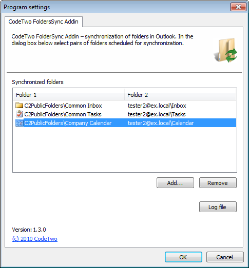 is an Outlook add-in that enables synchronization of folders. The synchronization of data will always take place between selected Get online support for CodeTwo FolderSync Addin. All links to technical documentation gathered in one place.